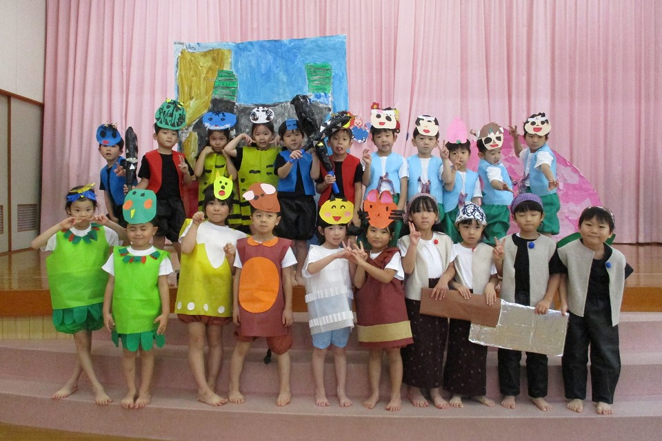 みんなのアイデアがつまった劇あそびやダンス。あそびの中で取り組んできた成果を存分に発揮できた発表会でした。